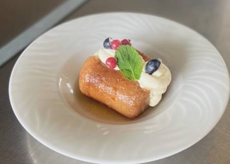 BABA au Rhum à la carte des desserts au restaurant la péniche de Sète